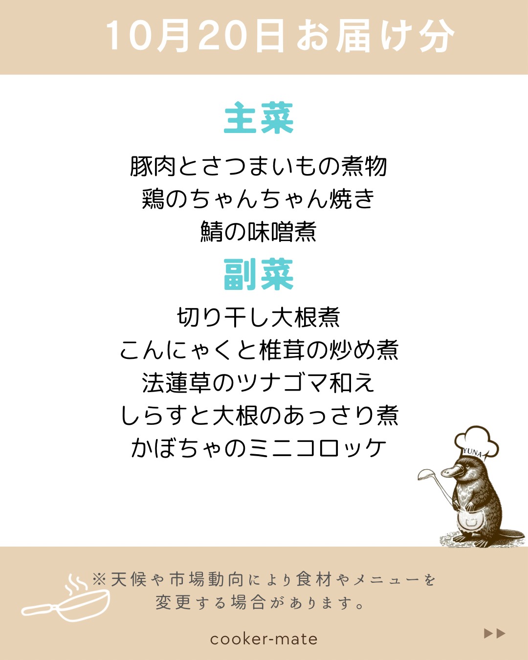 【宅配!おうち給食】2025/10スケジュール&メニュー | cooker-mate~お子様に寄り添う料理サービス~