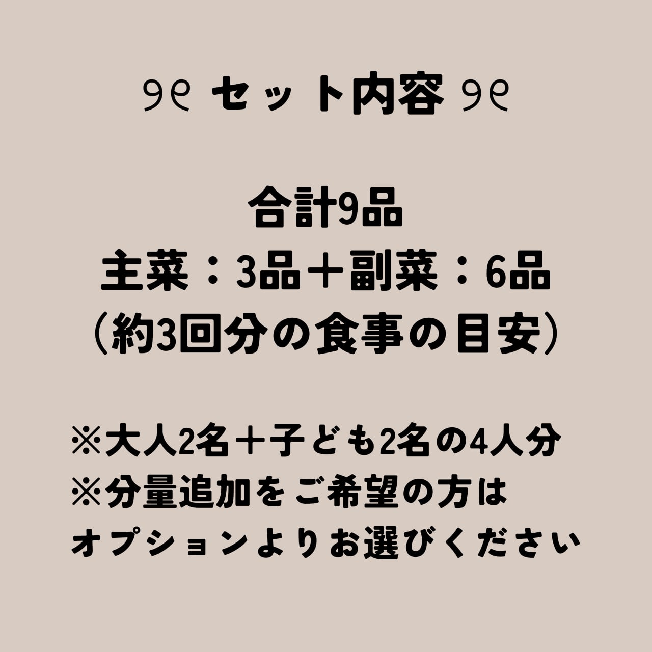 合計9品(約3回分の食事の目安)